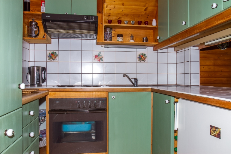 Gr.-floor: Livingroom with dining corner, kitchen, Bathroom with shower and toilette, terrace, roofed terrace